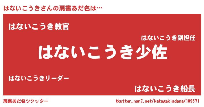 | ヒーロー風カッコイイあだ名 | 『仮面ハナダー』『ネオハナイコウキ』 |