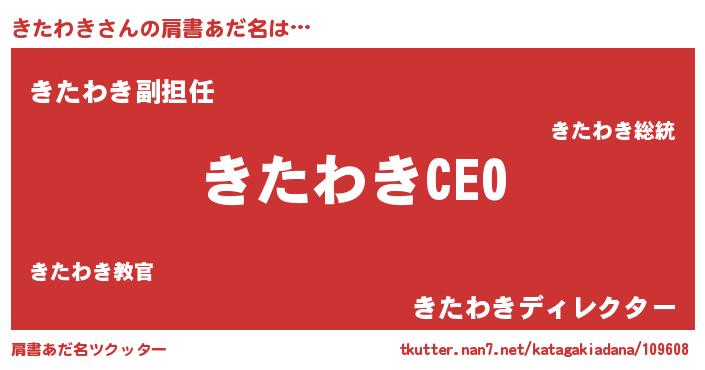 | ヒーロー風カッコイイあだ名 | 『スーパーキタワキ』『ネオキタワキ』 |