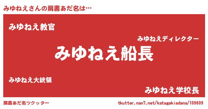 | 欧米人風あだ名 | 『みゆねえ・ステッグマイヤー』 |