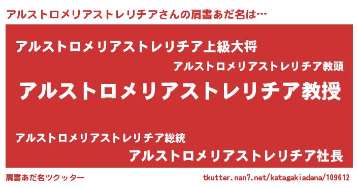 | 男性向けラノベタイトル風あだ名 | 『ノーゲーム・ノーアルストロメリアストレリチア』 |