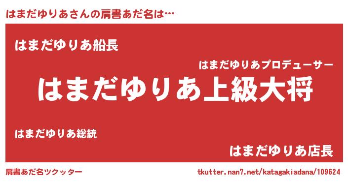 | 女子向けラノベタイトル風あだ名 | 『はまだゆりあの玉の輿計画!』 |