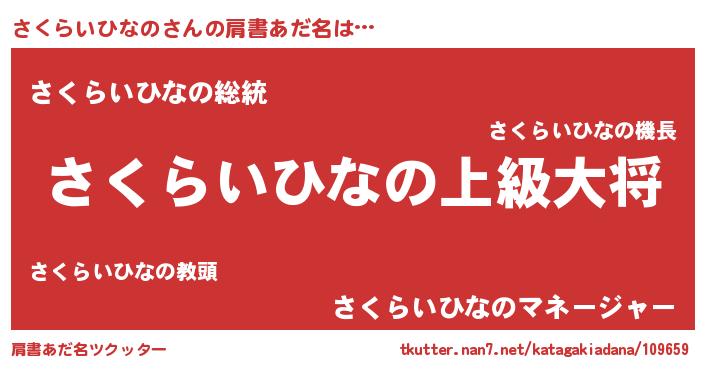 | 男性向けラノベタイトル風あだ名 | 『サクライヒナノスレイヤー』 |
