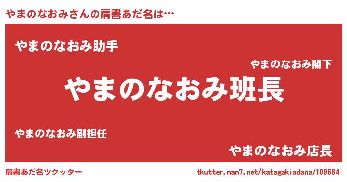 | 男性向けラノベタイトル風あだ名 | 『やまのなおみの嫁は女の子じゃないと思った?』 |