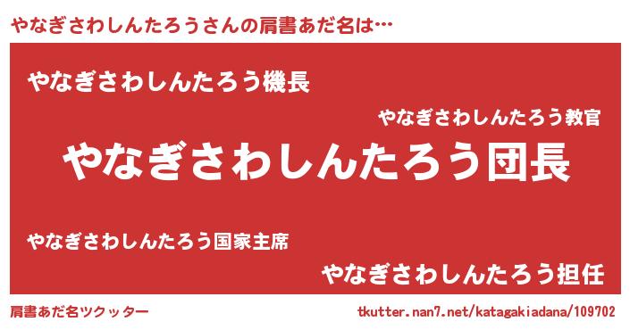 | 意味不明あだ名 | 『とにかく怪しいやなぎさわしんたろう』 |