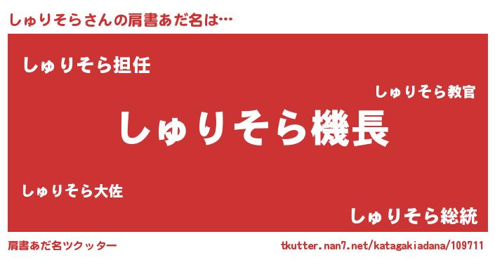| 意味不明あだ名 | 『永久保存しゅりそら』『自称しゅりそら』 |