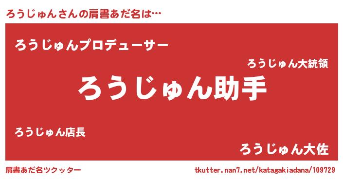 | 女子向けラノベタイトル風あだ名 | 『ろうじゅん夫妻のなれそめ』 |
