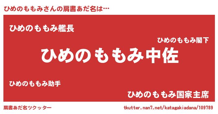 | 男性向けラノベタイトル風あだ名 | 『ヒメノモモミスレイヤー』 |