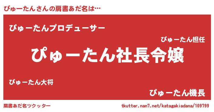 | 男性向けラノベタイトル風あだ名 | 『ぴゅーたんの憂鬱』 |