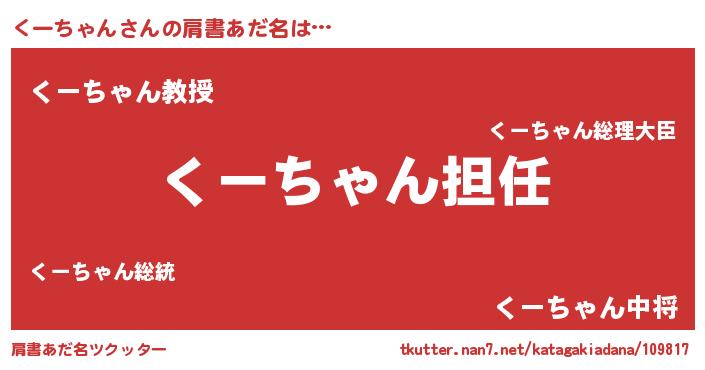 | 意味不明あだ名 | 『永久保存くーちゃん』『自称くーちゃん』 |