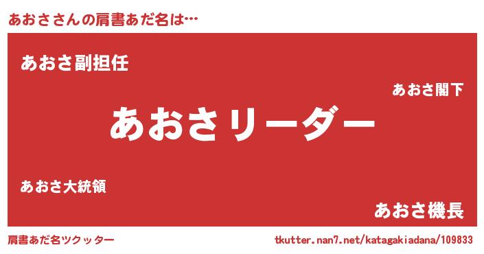 | 意味不明あだ名 | 『とにかく怪しいあおさ』『自称あおさ』 |
