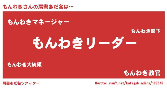 | 女子向けラノベタイトル風あだ名 | 『もんわきは平凡を望む』 |