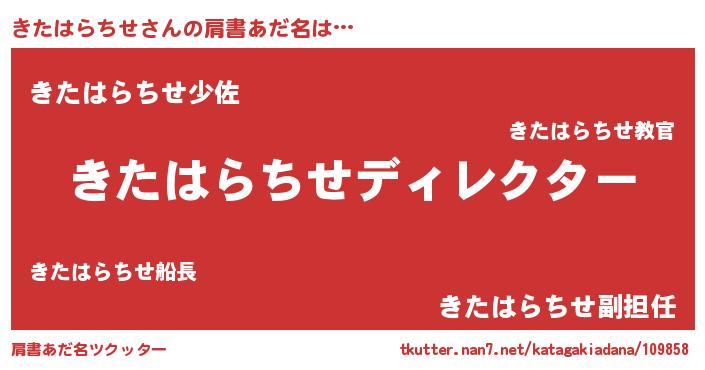 | 胡散臭い通販商品みたいなあだ名 | 『来世でも幸せになれる健康食品…その名も「きたはらちせ」』 |