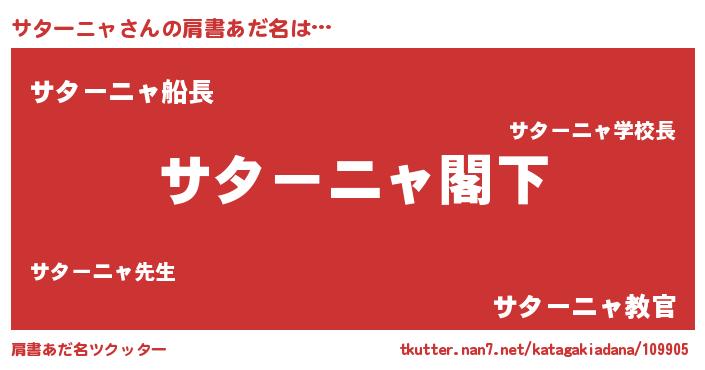 | ヘコむあだ名 | 『サターニャ(小並感)』『サタを』 |