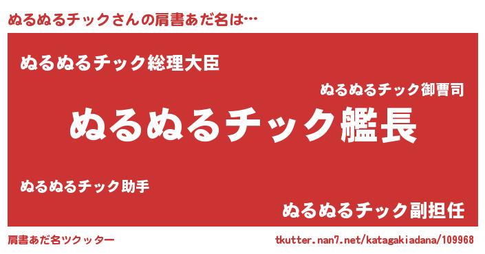 ぬるぬるチックさんの肩書あだ名をツクッター!