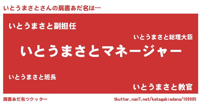 | 意味不明あだ名 | 『永久保存いとうまさと』 |