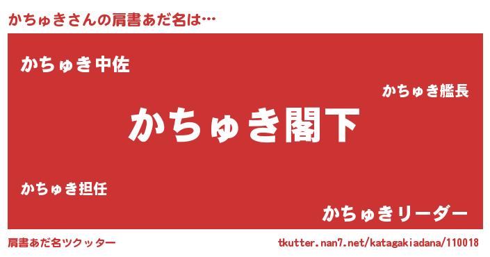 | 意味不明あだ名 | 『自称かちゅき』『なめこ科かちゅき属』 |