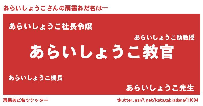 | 男性向けラノベタイトル風あだ名 | 『この素晴らしい世界にあらいしょうこを!』 |