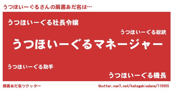 | 男性向けラノベタイトル風あだ名 | 『うつほいーぐるに滅ぼされるだけの簡単なお仕事です』 |