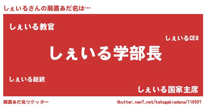 | ヒーロー風カッコイイあだ名 | 『正義の使者しぇいる』『仮面シェダー』 |