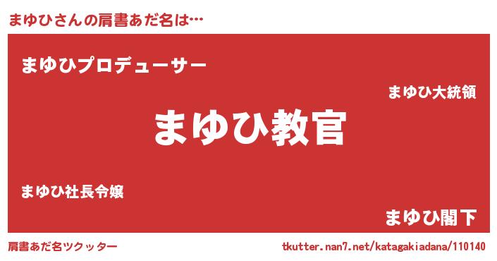 | 男性向けラノベタイトル風あだ名 | 『この素晴らしい世界にまゆひを!』 |