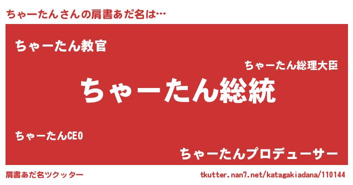 | ヒーロー風カッコイイあだ名 | 『究極戦士チャータン』『仮面チャダー』 |
