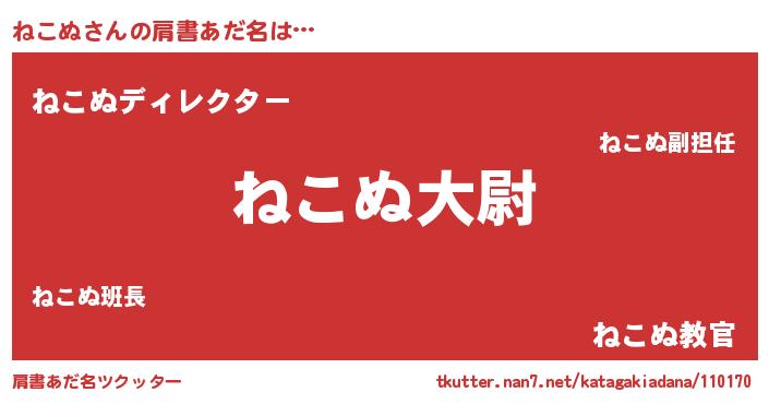 | ヒーロー風カッコイイあだ名 | 『仮面ネコダー』『ネオネコヌ』 |