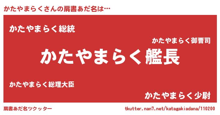 | ヒーロー風カッコイイあだ名 | 『究極戦士カタヤマラク』『魔戒騎士カタ』 |