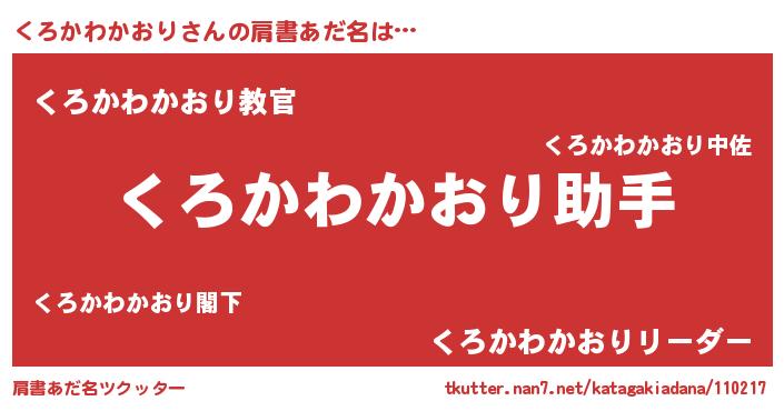 | 女子向けラノベタイトル風あだ名 | 『くろかわかおり恋絵巻』 |