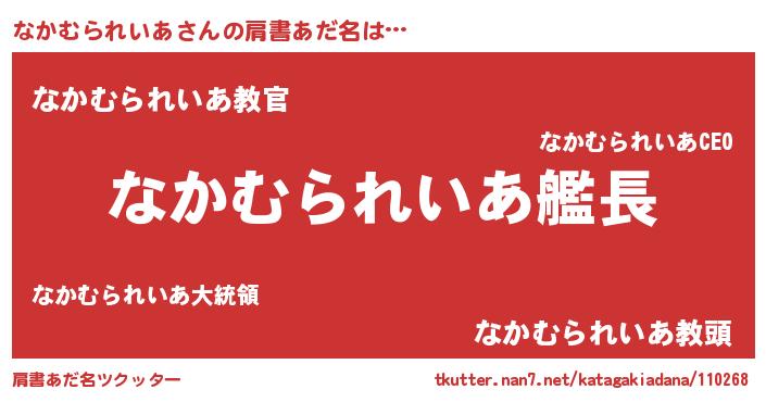 | ヘコむあだ名 | 『なかむられいあ(爆)』『なかっふぃ~』 |