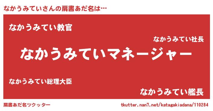 | 男性向けラノベタイトル風あだ名 | 『なかうみていに滅ぼされるだけの簡単なお仕事です』 |