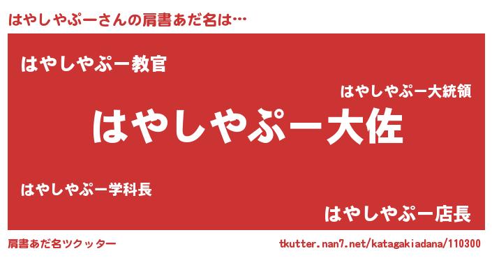 | 欧米人風あだ名 | 『トリンドルはやしやぷー』 |