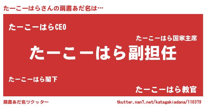 | 胡散臭い通販商品みたいなあだ名 | 『来世でも幸せになれる水素水…その名も「たーこーはら」』 |