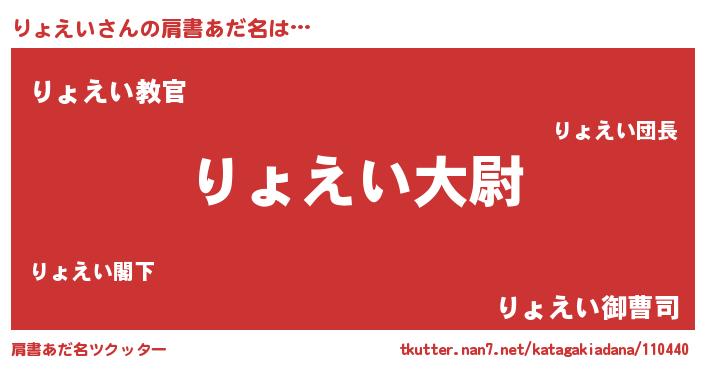 | 男性向けラノベタイトル風あだ名 | 『転生したらりょえいだった件』 |