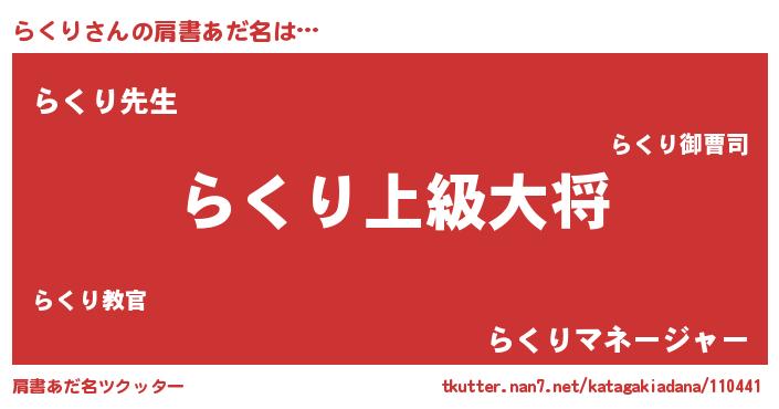| ポケモン風あだ名 | 『ラクキング』『ゼニラク』 |