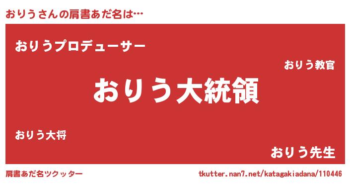 | 意味不明あだ名 | 『おりうフォーエバー』『永久保存おりう』 |