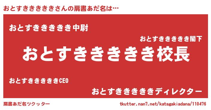 | 男性向けラノベタイトル風あだ名 | 『おとすきききききという概念が存在しない退屈な世界 』 |