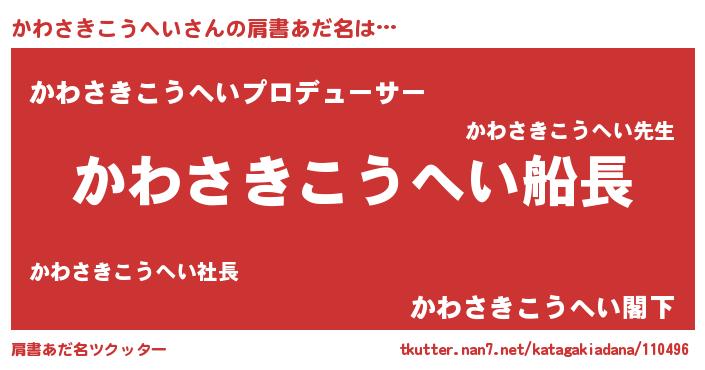 | 意味不明あだ名 | 『自称かわさきこうへい』 |