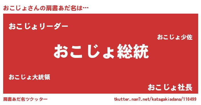 | 意味不明あだ名 | 『自称おこじょ』『ペロリンおこじょ』 |