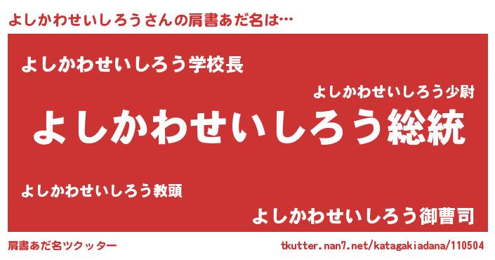 | ヘコむあだ名 | 『よしっふぃ~』『よしかわせいしろう(爆)』 |