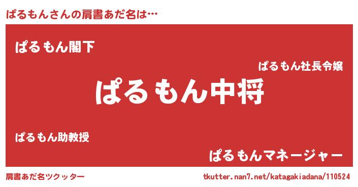 | 意味不明あだ名 | 『なめこ科ぱるもん属』『自称ぱるもん』 |