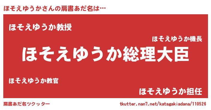 | 男性向けラノベタイトル風あだ名 | 『やはりほそえゆうかの青春ラブコメはまちがっている 』 |