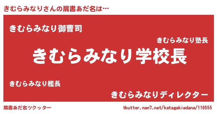 | 男性向けラノベタイトル風あだ名 | 『おまえをオタクにしてやるから、俺をきむらみなりにしてくれ! 』 |