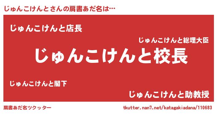 | 女子向けラノベタイトル風あだ名 | 『異世界で失敗しない100のじゅんこけんと』 |