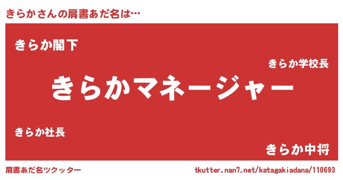 | ヒーロー風カッコイイあだ名 | 『超時空戦士キラカ』『友情の使者きらか』 |