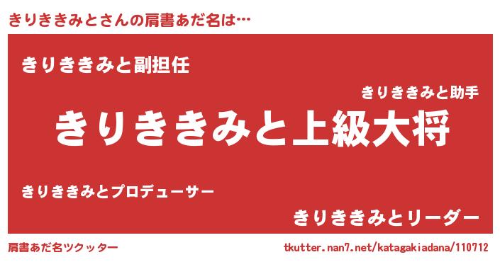 | 男性向けラノベタイトル風あだ名 | 『きりききみと~年齢イコール彼女いない歴の魔法使い~』 |