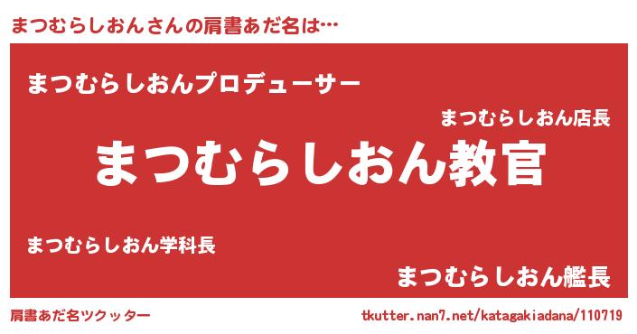 | 恥ずかしいあだ名 | 『プリティーまつむらしおん』『まつちん』 |
