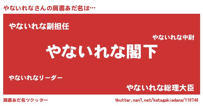 | 女子向けラノベタイトル風あだ名 | 『やないれななんてお断りですっ。』 |