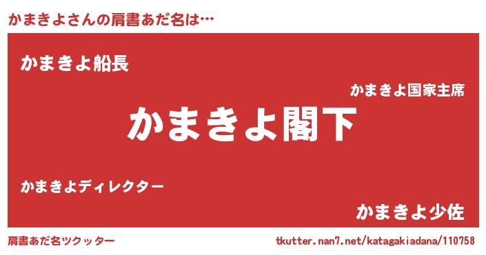 | 意味不明あだ名 | 『自称かまきよ』『エリンギ科かまきよ属』 |