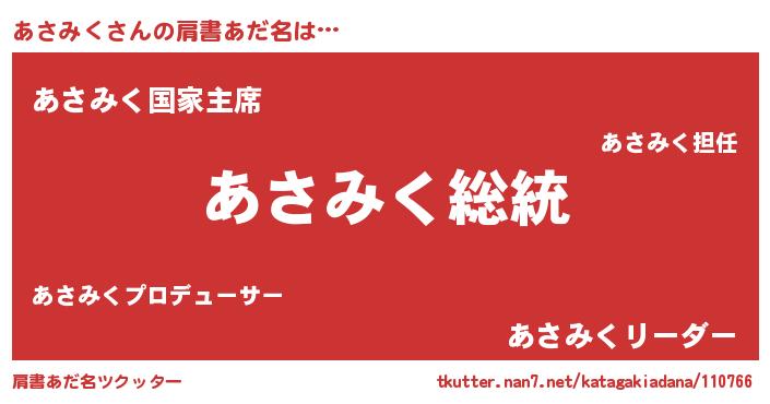 | ヒーロー風カッコイイあだ名 | 『ウルトラ戦士アサミク』『黄金騎士アサ』 |