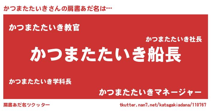 | ヒーロー風カッコイイあだ名 | 『仮面カツダー』『ネオカツマタタイキ』 |